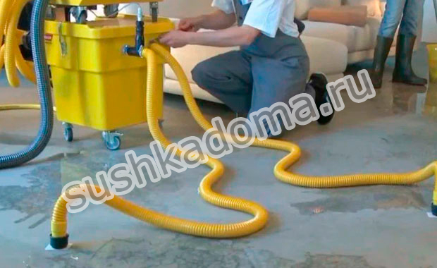 | Удаление воды с пола или из-под пола без демонтажа пола *Включает в себя осушение при помощи влагососов и выкачивание из-под пола или стен насосом через отверстия. |